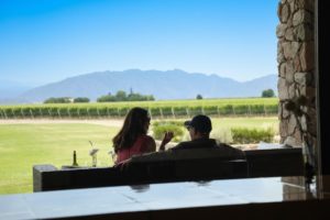 All visitors to the winery should have reservations; visitors must check in with the guard located at the driveway entrance and then proceed down the gravel/cobble driveway through their vineyard. Visits to the winery include a tour of the cellar with tasting stops located along the way or a tour of their vineyard. The winery houses a small restaurant open daily for lunch between 1230pm to 3pm. Reservations are required. Weather permitting, our favorite dining area is outside on the wooden deck overlooking their vineyard and the snowcapped Andes in the background. Choose from either a four-course or seven-course menu.
