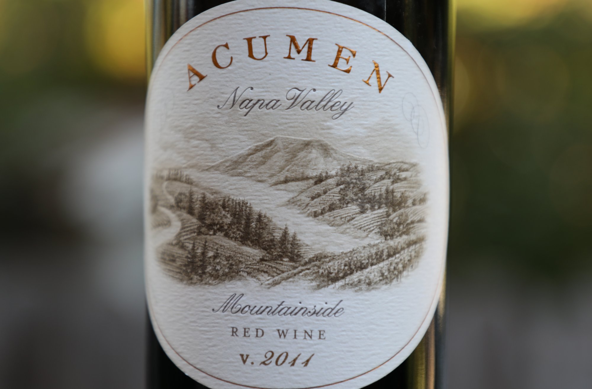 The 2011 Acumen Mountainside Red Blend is deep ruby and nearly opaque; for reference, we needled, nosed and noted this bottling 14 years post vintage. The bouquet is brooding, holding on to its reserved and character driven personality rather than any outgoing disposition. But give it time and its aromatics will become more expressive. Its scents are of dark leather, damp potting soil, dried mushroom, dried tobacco leaf, roasted coffee beans, mocha, espresso, old cedar box and dried herbs including sage and bay leaf. The fruit is here, but is brambly and dark, and at this age, is outplayed a bit by its savory and non fruited notes. Balanced, and like the bouquet, sports a darker and savory edge, this wine tastes like blackberry, boysenberry, Persian mulberry and Santa Rosa plum with finishing layers of dried herbs, pipe tobacco and smoked cedar. The tannins are tumbled and fully resolved at this age, lingering with a light gravelly grip perceived mostly on the front of the palate. Its ABV is a listed 14.3%, not necessarily high, but perhaps high for this particular cooler vintage in Napa Valley. And deep on the palate we feel a light but persistent warmth.