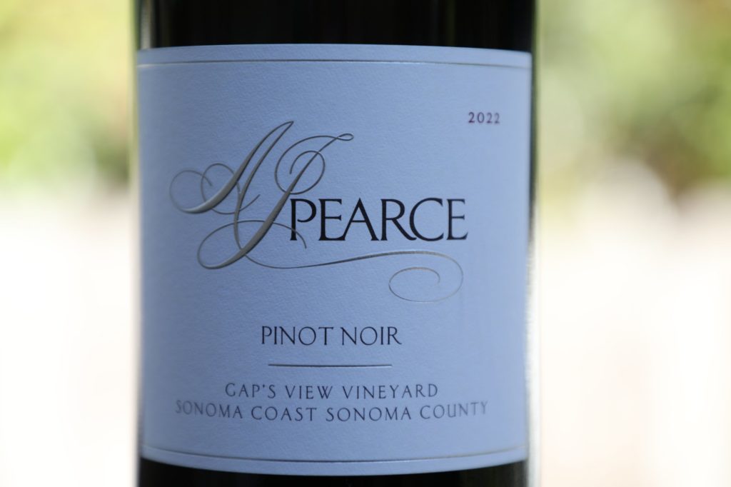 The 2022 AJ Pearce Pinot Noir, Gap’s View Vineyard Sonoma Coast, Sonoma County. This vineyard is located in the Petaluma Gap and is overseen by grower Eric Flanagan. This wine is pale ruby in color; the intensely scented bouquet smells like cherry cola, sarsaparilla, root beer, dark raspberry, strawberry, raspberry and perhaps a bit of cranberry. There are some floral undertones as well, including of African violets and dried rose petals. And some non fruited aromas including coffee, toast and tobacco leaf. Very much berry fruited, the brightly lit and balanced palate tastes like red cherry, blueberry, raspberry, cranberry and red plums. The focus of its flavor profile is clearly on the fruit with the spice`s that this variety is known for, held more in the background. The tannins are almost creamy in their textural character; soft and rounded they linger delicately and seamlessly on the finish. This wine features a balanced acidity. This is a ripe yet still bright expression of the variety.