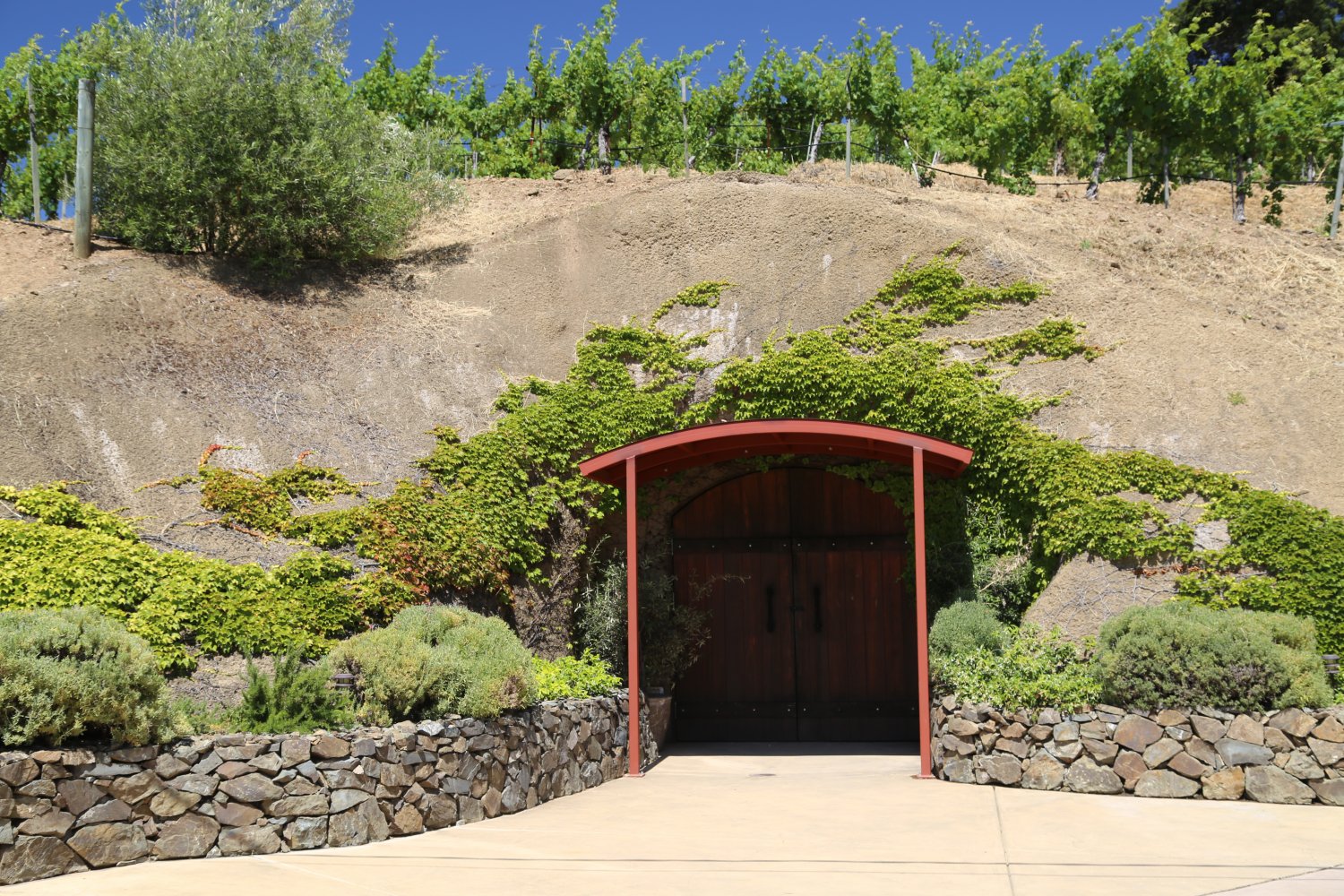 As with other hillside vineyards in Napa Valley, production is extremely small – usually in the range of 1 to 2 tons per acre. The berries are small in size and very concentrated in flavor due to the higher skin to juice ratio. Despite the already low natural vigor of the vines, vineyard workers usually cut off some of the grape clusters during summer with the idea to bring only the ripest most concentrated grapes into the winery. A cut out of the hillside directly behind the winery provides the perfect visual of the “soils” these grapes struggle to grow in. There is very little topsoil and beneath this are layers and layers of rock.