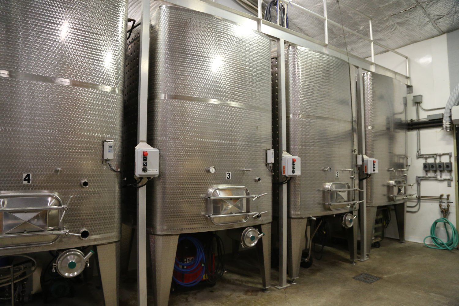 The winery is also small, but it does not need to be large. Custom square 8-ton tanks line one side of the wall. The tops of these tanks can be removed during fermentation as they prefer to break up the cap manually. This is done instead of pumping over juice which as the cap dries out; they noticed over time the pump overs seemed to only moisten part of the cap. Each tank is equipped with its own pump – this saves quite a bit of manual labor and allows them to remotely control each tank at any time for pump overs via an app. They have found that because they can set pump overs to run anytime shorter pump overs set to run more often work best for their wine making style.