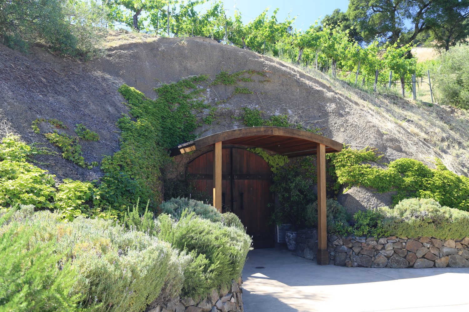 A small 800 square foot cave was tunneled into the hillside near the winery building; during the drilling the original plans for the cave called for a U shape. But they soon hit an abundance of water while drilling and were unable to drill further. As Spencer told us during our first visit “when you want water for a winery you cannot find it – when you don’t it is everywhere!”. Until 2023, this was one of the smaller wine caves in Napa Valley.