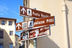 We have visited this inspirational statue several times; there are always far fewer crowds here than on the nearby road paralleling the Arno River and the always bustling Ponte Vecchio stone bridge.