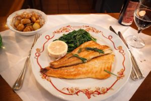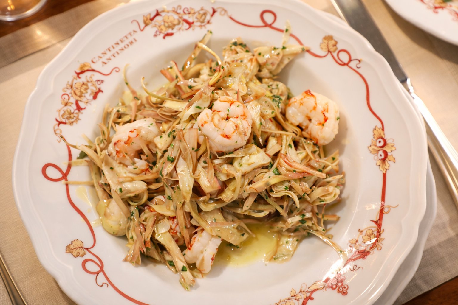 This is the original Cantinetta Antinori; the restaurant is open for both lunch and dinner. This elegant and sophisticated space is located in the center of town and a less than 10 minute walk from either of two iconic places, the Duomo Complex or the Ponte Vecchio on the Arno River. The restaurant offers the main dining room and bar area, and upstirs space or weather permitting, outdoors in a spacious courtyard. We highly recommend the warm shrimp salad with artichokes; in fact we sometimes still think of this delicious dish.