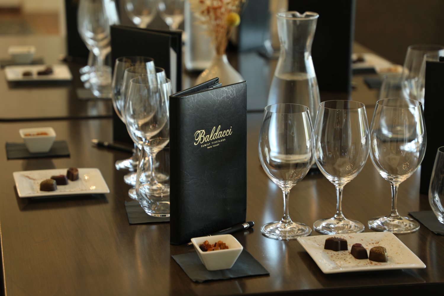 A visit here is a very personalized experience especially if one books the Cave Tour & Estate Tasting which includes a welcome glass of Baldacci ‘Pops’ Estate Grown Sparkling Wine “Brut” followed by 15-20 minutes touring the cave plus a wine sample straight from the barrel (usually one of their Cabernet Sauvignons). After the cave tour, guests are accompanied back to the hospitality house where a dedicated host serves the wines at a seated tasting (often in one of their private rooms). Other experiences including the Estate Tasting, and the popular Wine & Chocolate Tasting. And for more casual experiences, Baldacci offers wines by the glass at their tasting bar or weather permitting, outside on the terrace.