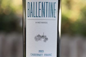 The 2023 Ballentine Vineyards Cabernet Franc (inaugural vintage) is deep ruby and opaque; straight up, the bouquet smells both fresh and fruity. The compelling scents include dark plum, black cherry, blackberry jam, boysenberry spread and Pakistani mulberry with lighter aromatic threads including lilacs, rose petals, mint and chocolate. But mostly the presence here is focused on its core of fruit. And we should also add, there are no herbal or green characteristics associated with either the bouquet or the palate, often a hallmark of this variety. Mouth filling deliciousness, this wine tastes like dark cherry, blackberry, boysenberry, Santa Rosa plum, Persian mulberry and dark raspberry. In a blind tasting we probably would have guessed its ABV as around 14.9 when in actuality, its listed ABV is 15.5%. Balanced, bright and crowd friendly, we would love to try this again in another 8-10 years. It finishes lively with broadly dispersed, grainy, gravelly and at this age, still gritty textured tannins; their presence far outpaces the fruit with a drying character.
