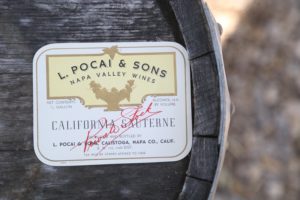 In 1906 the devastating earthquake and resulting fires destroyed much of San Francisco. Fortunately Libero and Maria moved to Napa Valley a year prior seeking out better climate in the summer for Maria’s health (she lived to be 94); they purchased 60 acres of land in the northern part of Napa Valley and six years later founded a winery near Calistoga called L. Pocai & Sons Winery and Vineyards. It was bonded winery number 115. Libero died in 1936. Pocai’s two sons, Henry & Frank eventually took over operations of the winery; Frank was Betty’s father who was married to Betty’s mother Anna. By the 1950s the winery was producing about 50,000 gallons of dry wine a year, selling it primarily as bulk wine. Over the years it won medals for its wines at various competitions including at the California State Fair in 1951, earning a gold for their Claret and a bronze for their Sauvignon Vert. The last vintage produced at L. Pocai & Sons Winery was in 1982. Remarkably this physical winery is still standing although it is no longer being used for winemaking.