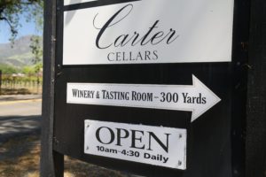 Visits are by appointment for serious wine enthusiasts who often are already familiar with the Carter Cellars Wines. Tastings are hosted at Envy Winery in Calistoga in one of two private rooms either on the first floor next to the primary Envy tasting room or upstairs. Envy is one very few wineries located north of Calistoga. The winery is on Tubbs Lane – the same street as Chateau Montelena and just to the west of a local natural geyser (Old Faithful Geyser); if timing is right, one can see it spewing white spray high into the air. This geyser was mentioned once in an article in National Geographic. There are also excellent views of the nearby Vaca mountain range including the tallest mountain in the vicinity, Mt. St. Helena which is sometimes capped with snow on its upper reaches during the winter months.