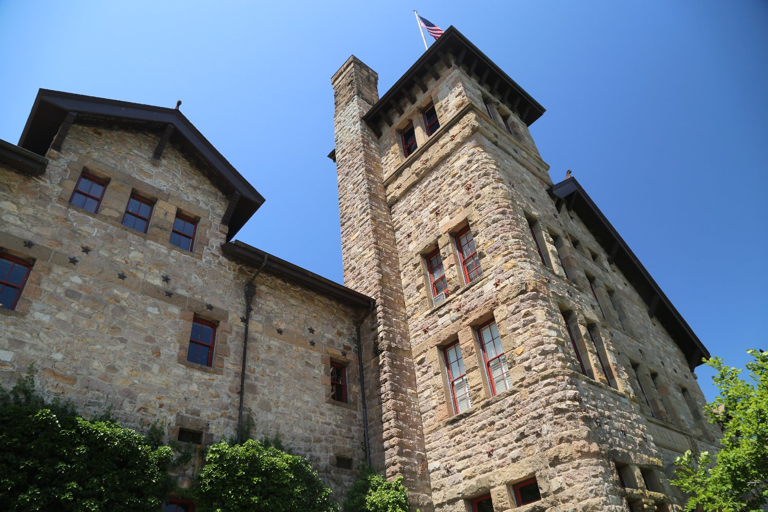The building’s massive cornerstone was placed on June 15, 1888 (but was never marked); it was located in 1988 and eventually moved on display near the main entrance. A number of keepsakes were placed on the cornerstone at that time including seven bottles of wine (among them a Charles Krug 1885 Riesling, a Beringer 1884 Burger and a Bourn & Wise 1887 Sauvignon Vert). A copy of the St. Helena Star and several other newspapers were also included – the Star article reported, “the health of Messrs. of Bourn and Wise was drunk …”.