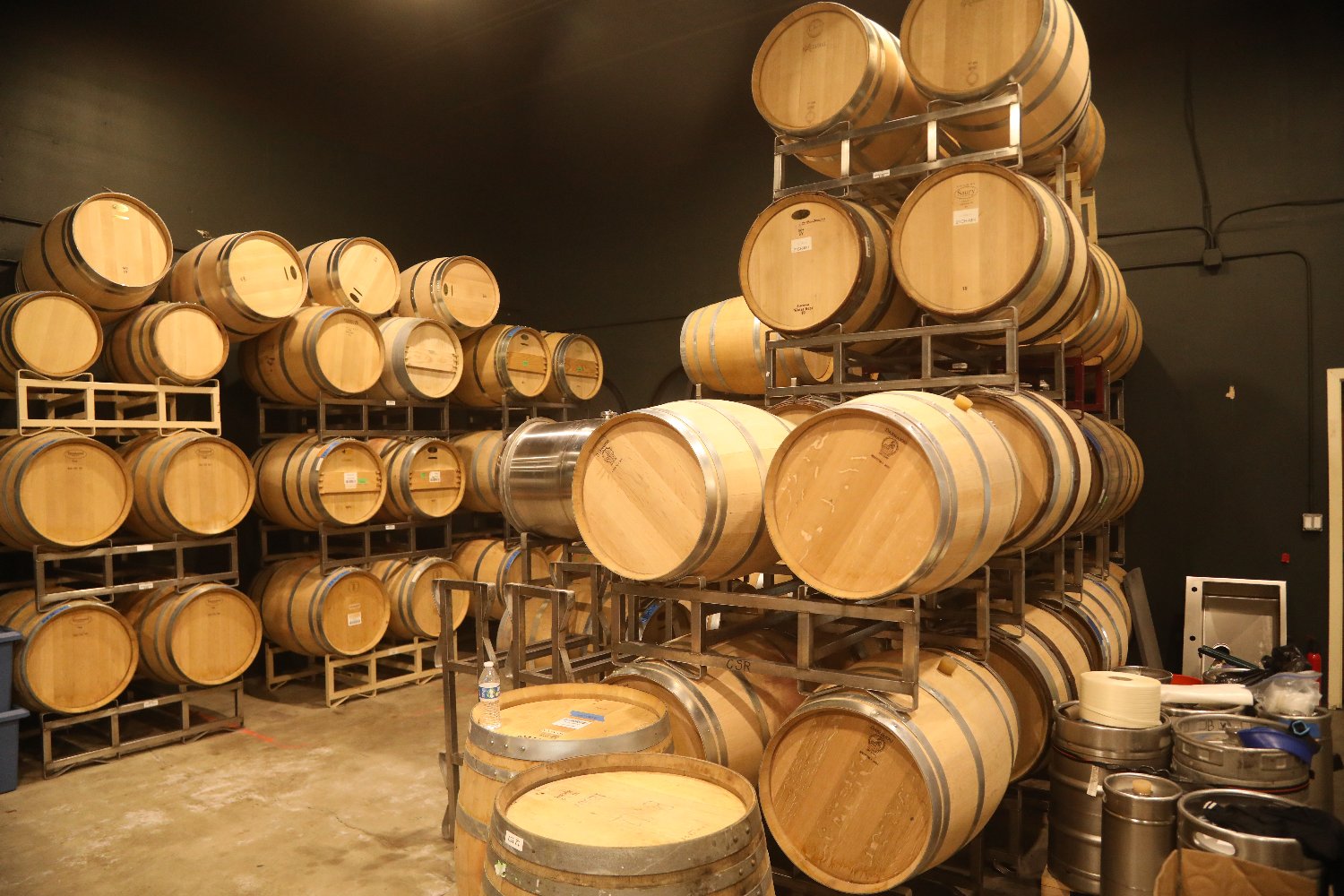 In 2021 Chiron Wine moved into their first ever dedicated winery and hospitality space located in an industrial zone a few minutes’ drive south of downtown Napa. This area is known as the ‘Crusher District”, named for numerous wineries who typically do not own vineyards but make their wine in this part of town and often have associated tasting rooms. This space was previously used by Y. Rousseau Wines. Since Chiron moved in, the tasting space was completely renovated and featured an intimate room for guests to enjoy the wines, directly next to the entrance to the barrel room and winery. Several large pieces of art were displayed on the walls; these are original paintings by Bobby’s wife.