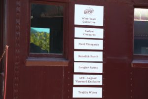 Claudio Family Cellars was part of a several brands showcased in one of the two front train cars at the Calistoga Depot in Calistoga. Wines in this space were first showcased in December 2024 as part of a popup by Langtry Vineyards in Lake County. The Claudio Family Cellars wines were available here in flights, by samples from the Wine Tech Wine Dispenser stations, by the glass or by the bottle. While no longer available in the depot car, they are still available for sale next door in the Depot store.