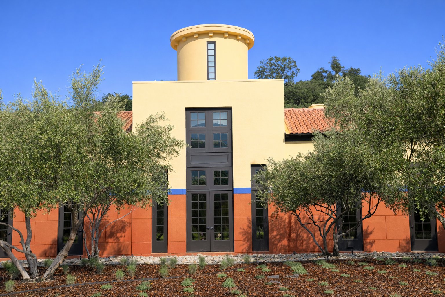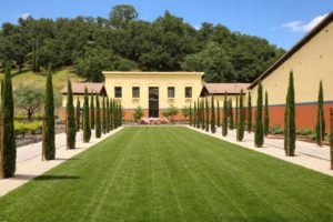 Clos means “enclosed vineyard” in French and this winery is a blend between open space, an interior courtyard and the nicely landscaped gardens. It is a uniquely designed complex which can be popular with larger group tours. Note the similar looking architecture of the house on top of the hill next to the winery; Jan and Mitsuko used to live here and it was also designed by Graves.