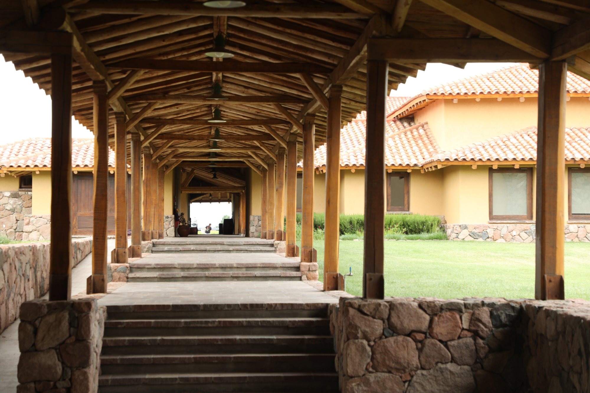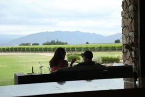 All visitors to the winery should have reservations; visitors must check in with the guard located at the driveway entrance and then proceed down the gravel/cobble driveway through their vineyard. Visits to the winery include a tour of the cellar with tasting stops located along the way or a tour of their vineyard. The winery houses a small restaurant open daily for lunch between 1230pm to 3pm. Reservations are required. Weather permitting, our favorite dining area is outside on the wooden deck overlooking their vineyard and the snowcapped Andes in the background. Choose from either a four-course or seven-course menu.