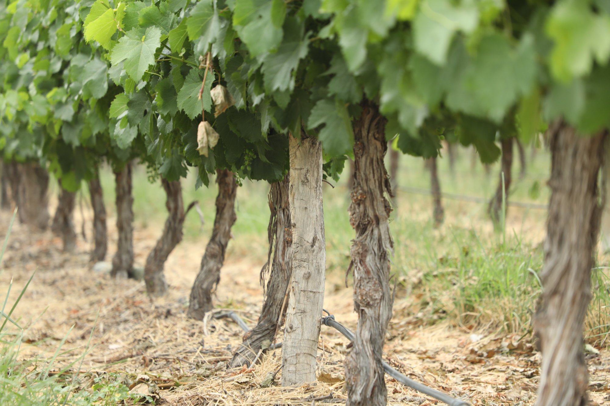 Remarkably, as of mid 2023 this vineyard is still growing although it is not being maintained very well at all. During a visit it appeared that a number of replants were added to the site in the last year or two. Numerous old vines had passed on, but a number were still living – albeit their fruit output was marginal at best with extremely tiny berries filled primarily with seeds.