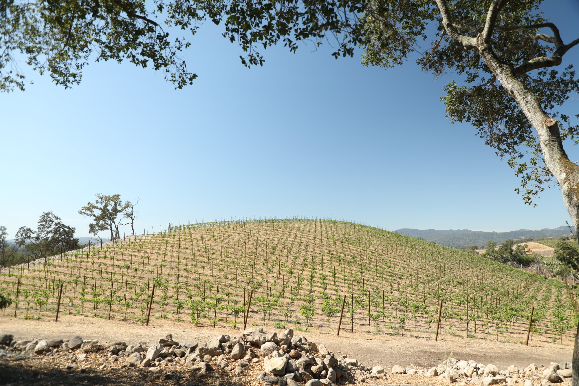 A seven acre vineyard was planted in 2024 by Pina Vineyard Management, overseen by winemaker and Master of Wine, Nova Cadamatre; she chose the clonal and rootstock selections. The property had never before been planted to grapevines. And Pina Vineyard Management laid out the vineyard footprint and planted the vines. This was a rare opportunity in 2024 to develop a new mountain vineyard in Napa Valley.