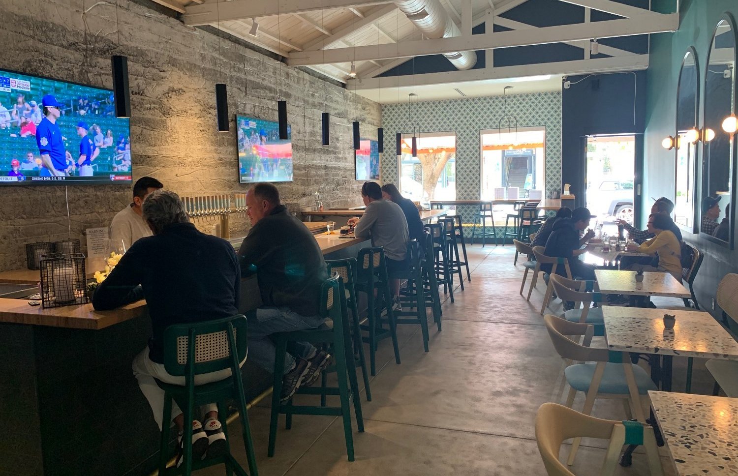 And the Tap House opened directly next door in mid 2021. Casual yet contemporary the space is inviting and setup for guests to have fun and learn about beer and wine. Rather than offering only beer, a number of small production wines are available from 24 different taps. Guests can hang out at the bar or at several tables near the bar.