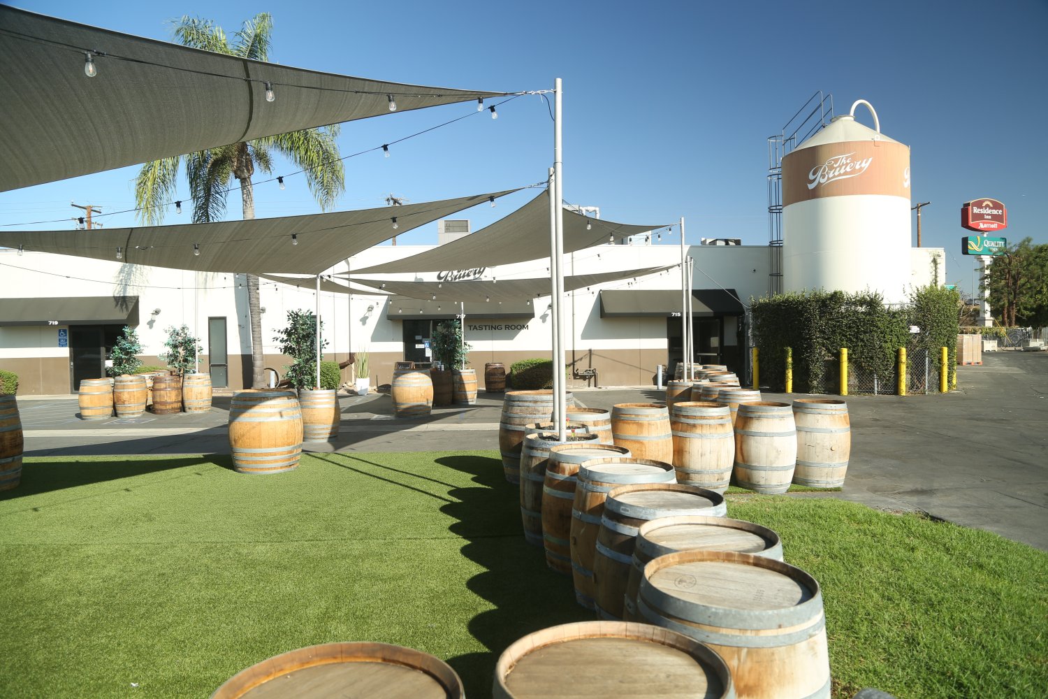 This space is conveniently located directly next to the 57 freeway off of Orangethorpe Avenue about a 10-minute drive from downtown Anaheim. The brewery and tasting room are located in an industrial park – the Bruery Fulfillment offices are located on the other side of the parking lot. Plenty of open-air parking is available within a short walk of the brewery entrance.