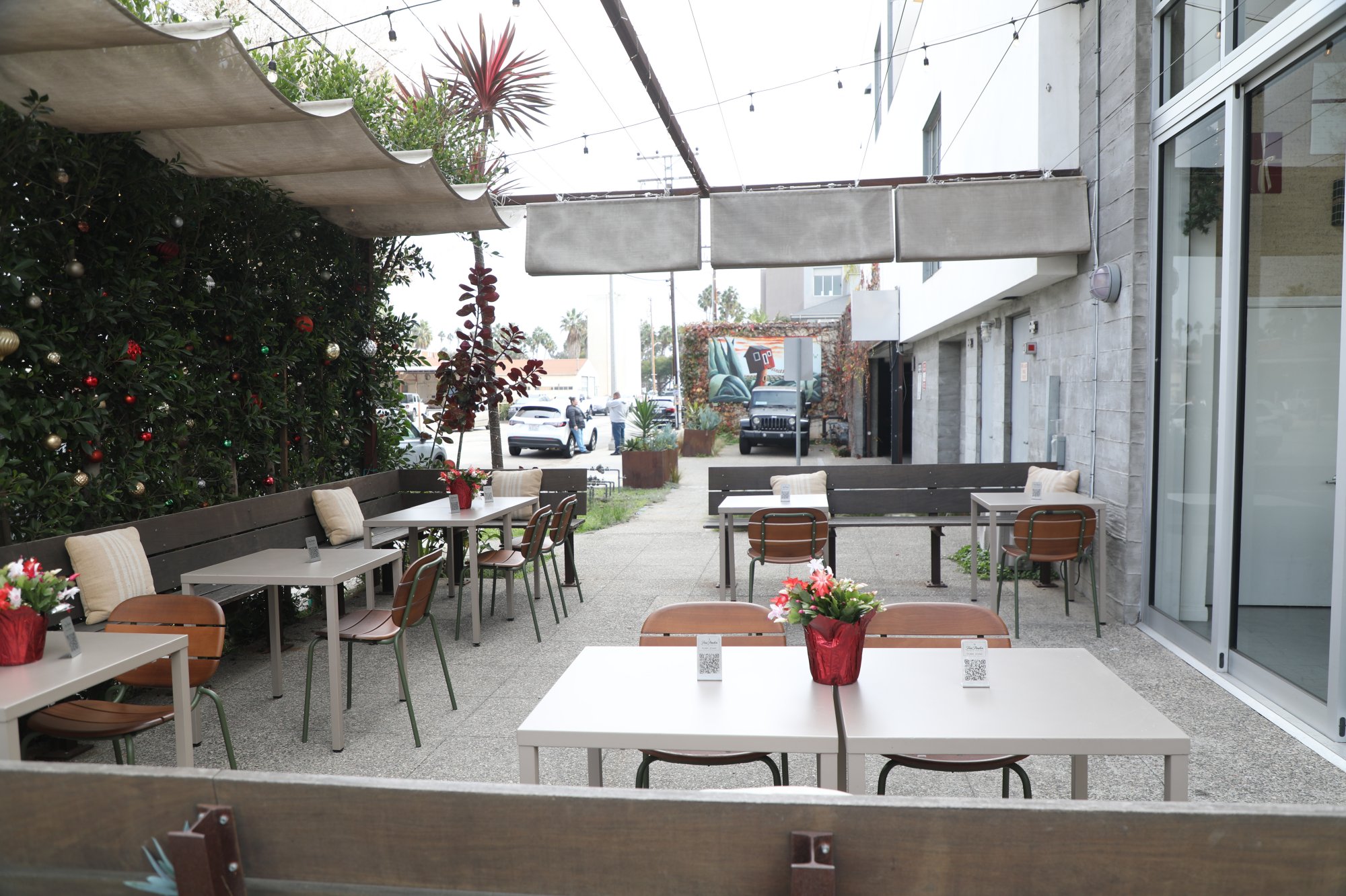 On Saturdays, they offer Wagyu beef BBQ smoked for 16 hours using white oak from the Fess Parker Ranch. A limited number of seating is available indoors with the majority of seating outdoors located in a courtyard or in front of the main entrance.