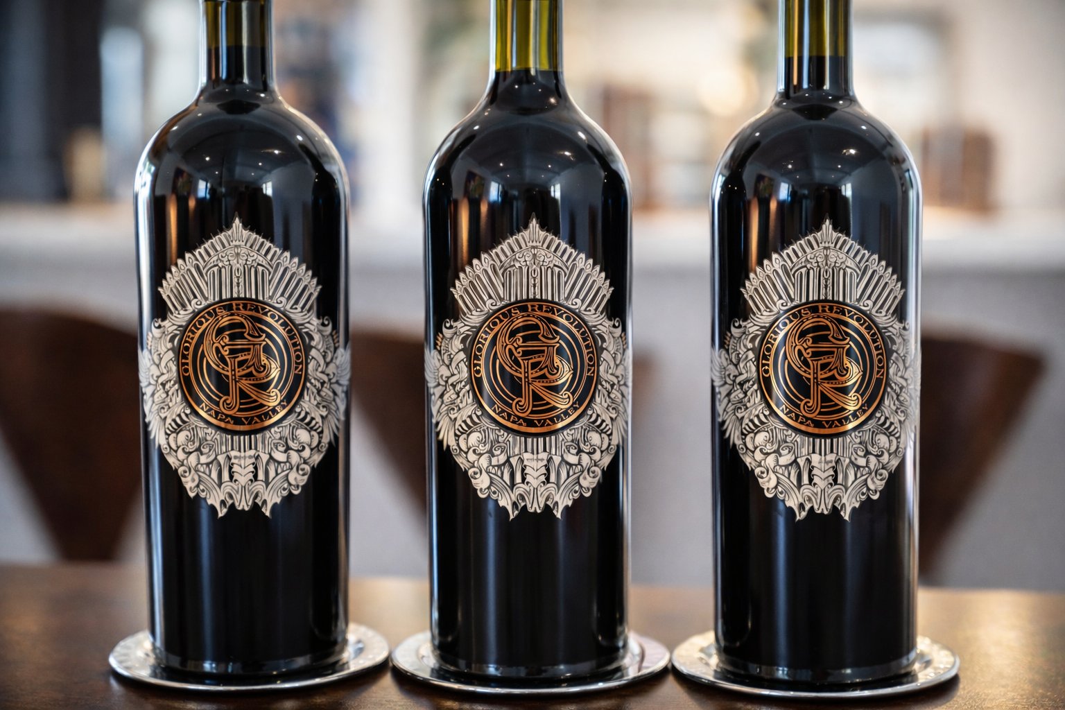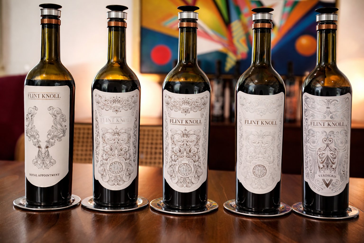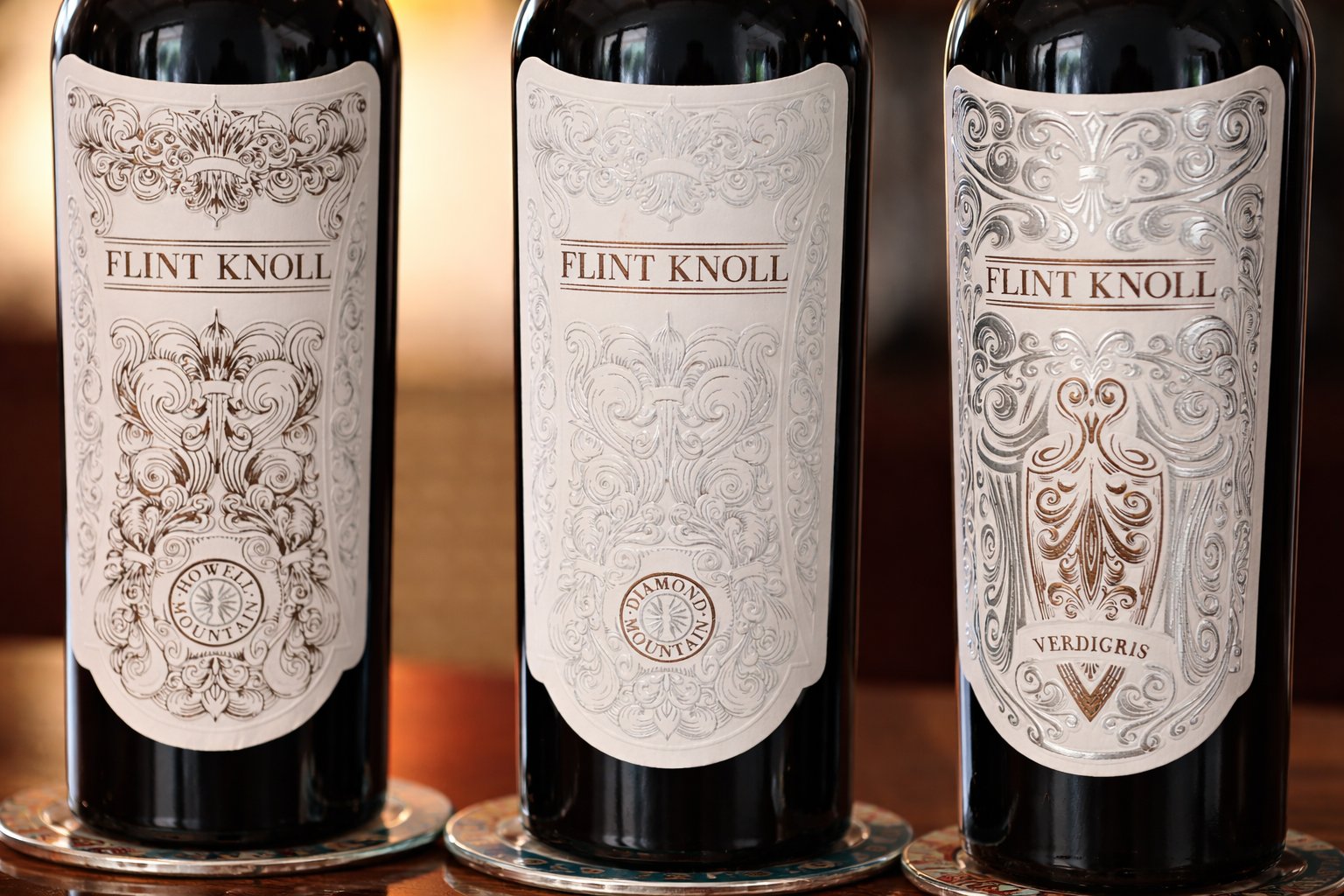 The Flint Knoll labels are among some of the most ornate and visually intriguing in the valley especially the etched larger format bottles. The details were inspired by the designs on the barrels of several family heirloom shotguns.