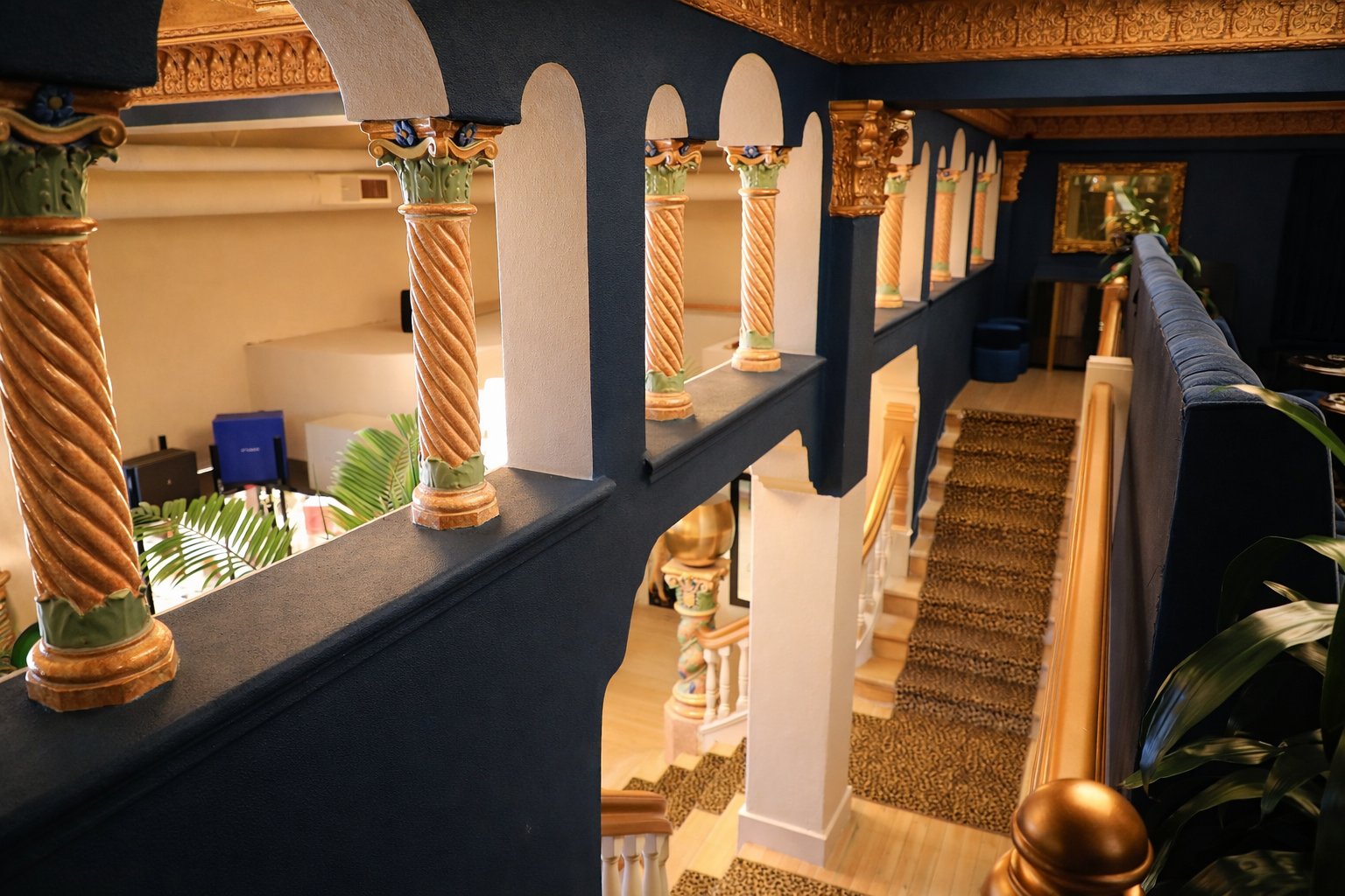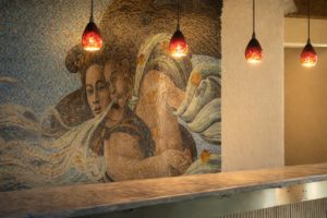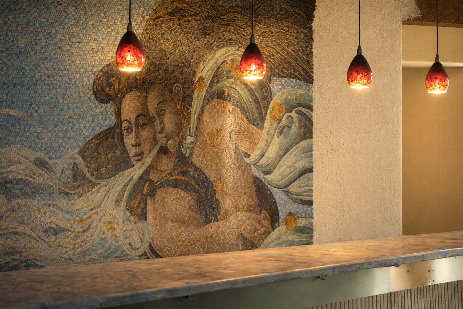 NOTE: A major interior and exterior renovation occurred in 2026 with numerous hand-crafted mosaics built into both the exterior and interior of The Room including a representation of The Birth of Venus behind the main bar, modeled after the painting by Italian artist Sandro Botticelli. All the mosaics came from Italy. The exterior is dazzling with its thousands of small tiles, certain to cause passing motorists to hit the brake and take a glance to one side.