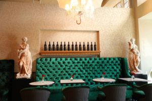 Wines are available by walk-in or appointment and can be ordered by glass or bottle with seating downstairs at tables comfortable couches or at the bar. Additional offerings include curated wine flights, wine-forward cocktails, and pairings with caviar or chocolate. A single red rose is placed on every table, an homage to Flora, the Roman goddess of flowers and renewal.
