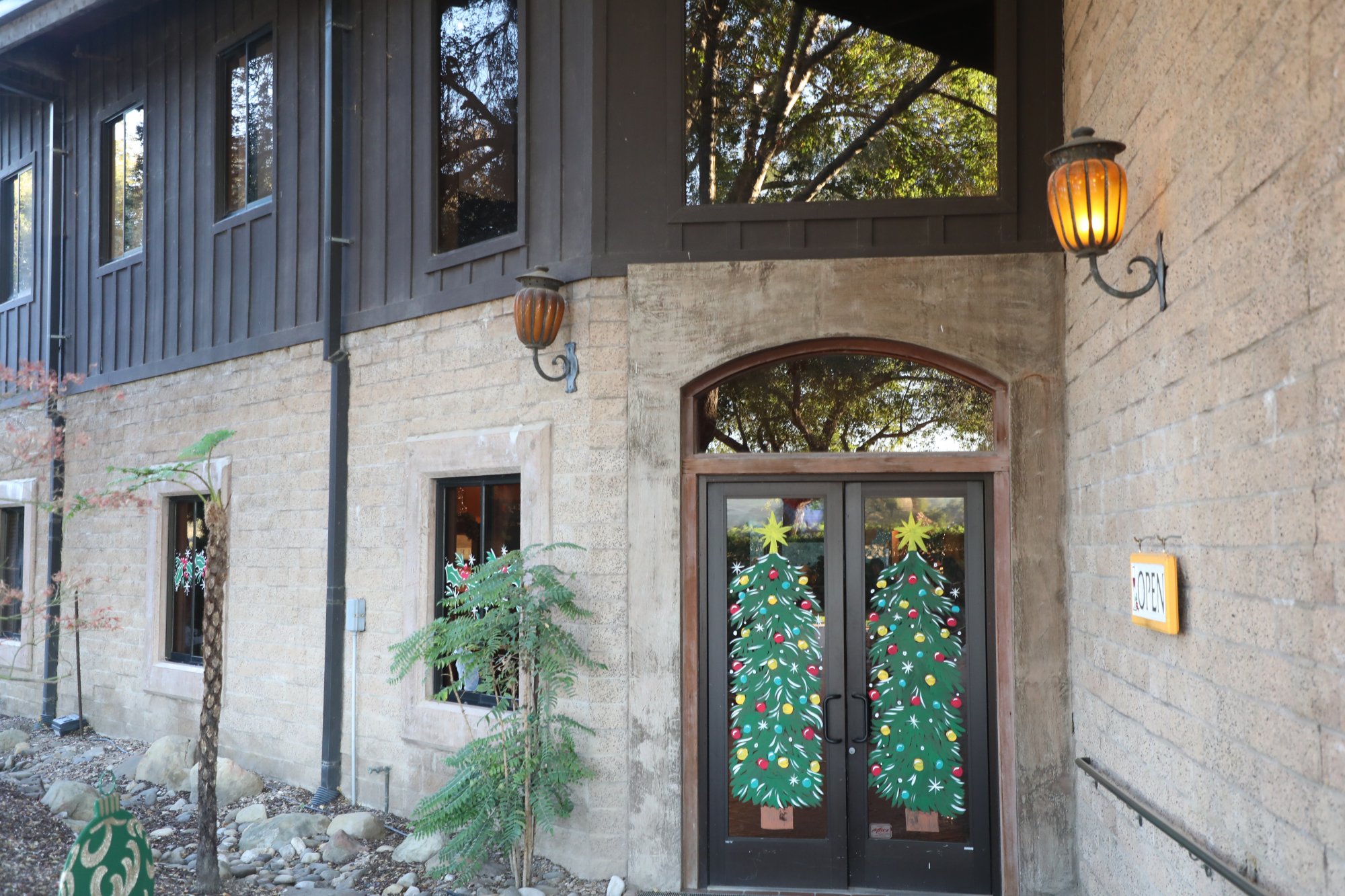 A number of sit down spaces are available for visitors including weather permitting, the front patio where guests are treated to the sound of the wine train passing during certain times of the day, inside next to the main tasting bar, a smaller room and for larger and private groups, the original barrel room located below the winery/hospitality area. This is one of the few Napa Valley wineries with an elevator; the old barrel room used to use an elevator for transporting barrels between the cellar and the first floor.