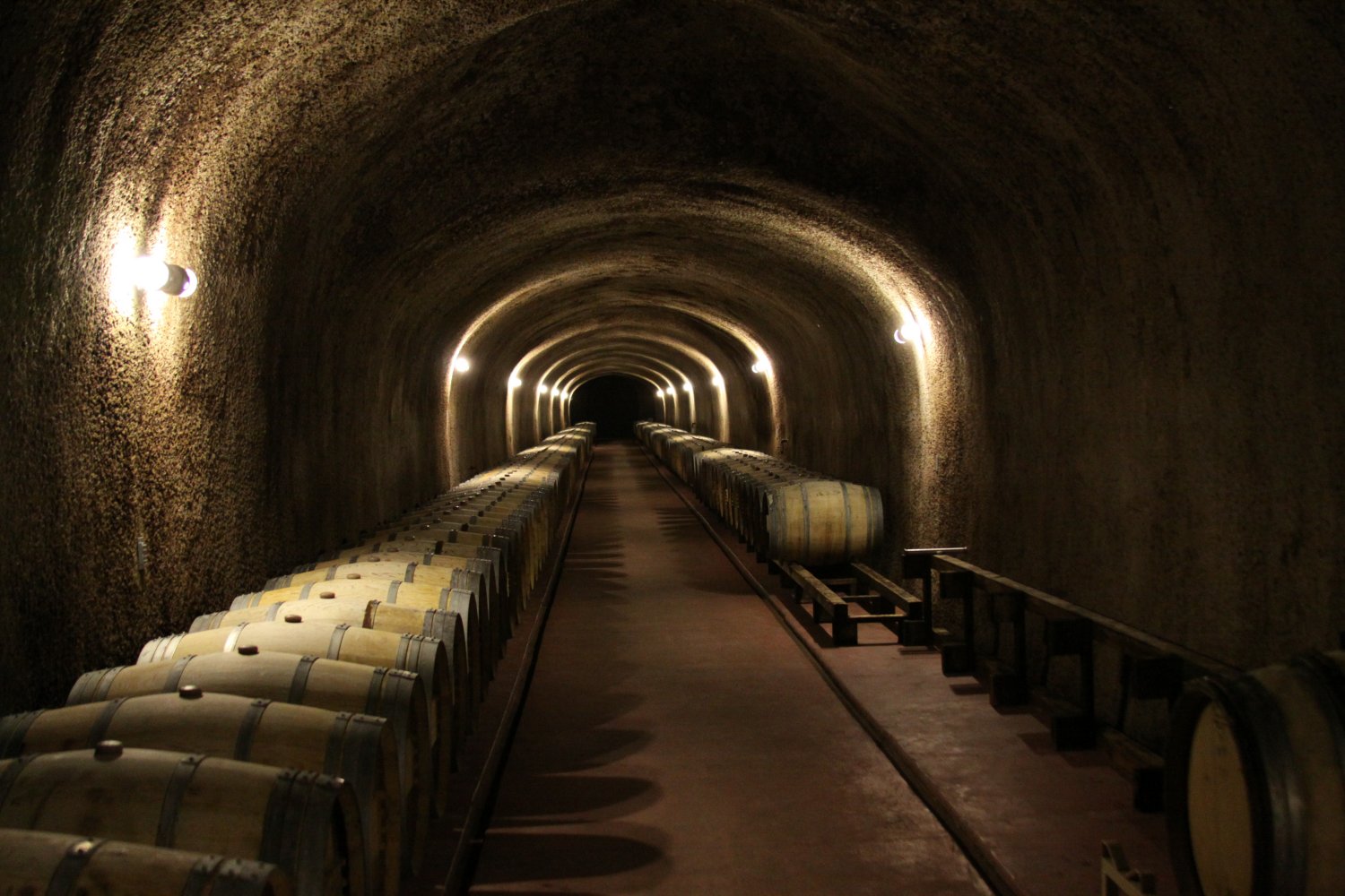 Harvest is always done by hand with the processing of the grapes starting almost immediately as the winery is located within a short drive from any of the vines on the property. The red wines are all fermented in small steel tanks; the small size helps ensure quality control. The red blend is typically aged in 60-80% new French oak. Blends are decided upon soon after fermentation. The winery is located directly above the cave with a stainless steel pipe running vertically from the winery into the cave. When filling barrels, the transfer of wine from the winery into the cave is remarkably fast, in about 2.5 minutes per barrel.
