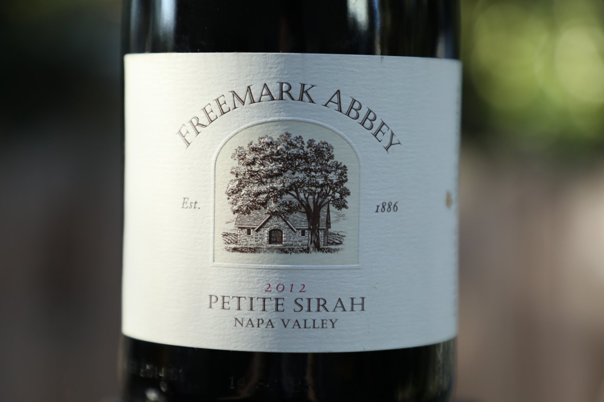 The 2012 Freemark Abbey Petite Sirah is 90% Petit Sirah, 8% Zinfandel and 2% Petit Verdot. This wine was aged for 21 months in French and American oak barrels, with 24% new French oak and 10% new American oak, the remainder being used barrels. At 14 years post vintage, this wine is holding on to its color exceptionally well, a cross between deep ruby and deep purple. Its listed ABV is 15.0%, not surprising for this variety grown in Napa Valley. The nose is ripe and sweetly fruited but not over ripe or jammy; its scents include blackberry pie, boysenberry, baked plums and dark cherry with non fruited notes of dark licorice, chocolate, cinnamon stick, cloves and vanilla. This wine smells like dessert. Big but balanced across the palate and still very much expressing its primary fruit characteristics. This wine tastes like Satsuma plum, dark cherry, ripe blackberry, boysenberry and Himalayan purple mulberry. It is intensely flavored, representative of this variety. The wine sits on the palate with some noticeable weight but is never heavy, rather the tannins are managed quite nicely. Their gravelly and dusty texture coats the palate in its entirety and lingers far beyond the fruit on the finish. This wine has years of life ahead of it still (maybe decades) but is currently showing in a particularly sweet spot. A T-bone steak please. Ted Edwards made this wine.