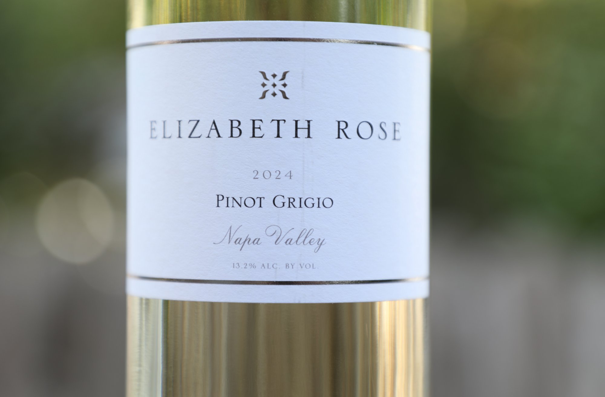 The 2024 Elizabeth Rose Pinot Grigio, Napa Valley is medium gold in color; the definition of aromatic whites, the bouquet is immediatley open-knitted and expressive at a year post vintage. Its scents include pineapple guava, comise pear, gravenstein apples, under ripe pineapple, young kaffir lime leaf, lemon zest, lemon verbena, citrus blossom, white grapefruit, green guava, dried thyme and green apple drops (hard candy). Perhaps not quite as herbal or citrusy on the palate like on the bouquet, this wine tastes like honeydew melon, carambola, kiwi, lychee, comise pear, white nectarine, Babcock peach and ruby grapefruit, but without the bitter or pithy character commonly associated with that citrus. The lightly fleshy mouth feel is lifted nicely by the bright acidity. The juicy and vivacious finish lingers with a note of fennel and tarragon. Its listed ABV is a refreshing 13.2%. This is one of the more spirited and balanced wines from this variety we have tried from Napa Valley. In a blind tasting we probably would have picked it out as a Sauvignon Blanc.