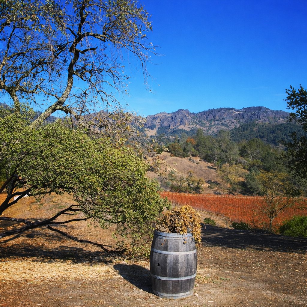 Tom borrows a term from his architectural toolbox and calls their vineyard location the “mezzanine” of the valley. Winfield Vineyard is not quite valley floor and not quite hillside either. Rather it sits just above the valley upon alluvial fan soils that have eroded down from Mt. St. Helena and the Palisades (nearby rocky ridges) over the centuries.