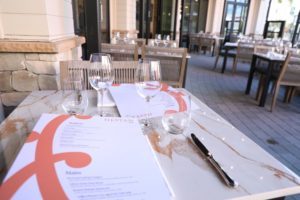 Hestan Napa sells a diversity of Hestan products including NanBond cookware and other culinary appliances. A ‘cookware concierge’ is on hand to help with advice and purchasing decisions. In addition, the space houses a restaurant serving lunch only, with indoor and outdoor seating (including heat lamps) and a tasting bar. Like in their Yountville tasting room, the indoor tables are creatively re-purposed from barrel staves. Be sure to duck into one of the restrooms; bathrooms are always one of our pet peeves. This one is elegant and classy.