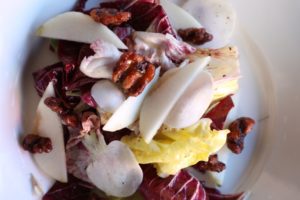 The small plates are especially worthy of mention, delivering precise flavors, artful textures, and a sense of intention in every bite. Highlights include the Hamachi Crudo, Grilled Calamari, Chicory Salad and the Duck Liver Mouse.