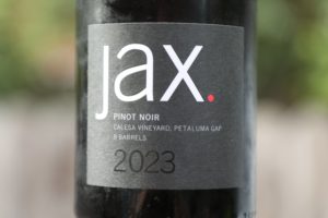 The 2023 JAX Vineyards Pinot Noir, Calesa Vineyard is pale ruby in color; the bouquet is generous and layered with aromas of cherry cola, raspberry, strawberry, cranberry, a light toast, white pepper, dried bay leaf, thyme, dried moss, loam, a light touch of baking spices and some purple florals including African violets and lavender. Bright across the palate with a balanced acidity, this wine tastes like red cherry, currant, raspberry, strawberry, boysenberry and red plums. There is a savory edge that persists on the finish built around flavors of dried herbs (sage and bay leaf), white pepper and an earthy character. We enjoy Pinot Noir with some tannin texture; this wine has it, sporting a gravelly, broadly mouth coating and lightly grainy feel which persists beyond the fruit on the finish. This wine has loads of life ahead of it; for refence we needled and nosed it 2 years post vintage. The grapes for this wine were cold soaked for 5-7 days, followed by fermentation and then aging for 18 months in 40% new and 60% year old French oak barrels. We would be highly confident presenting this wine as the quintessential California Pinot Noir to European producers of this variety.