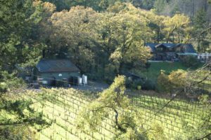 Surprising for the location (Spring Mountain Distinct) Chardonnay is grown on site. This is not a variety you think of when it comes to up valley Napa hillside-based wineries. However, there are several other Spring Mountain wineries growing this variety and it has its own unique characteristics compared to the more common cool weather Chardonnay sourced from the Carneros district to the south. The vineyard that produces this wine is directly below the winery and the tasting room. It is dry farmed. They make this wine in a similar style each year – barrel fermented, no secondary malolactic fermentation and the wine is stirred on the lees during its aging.