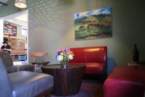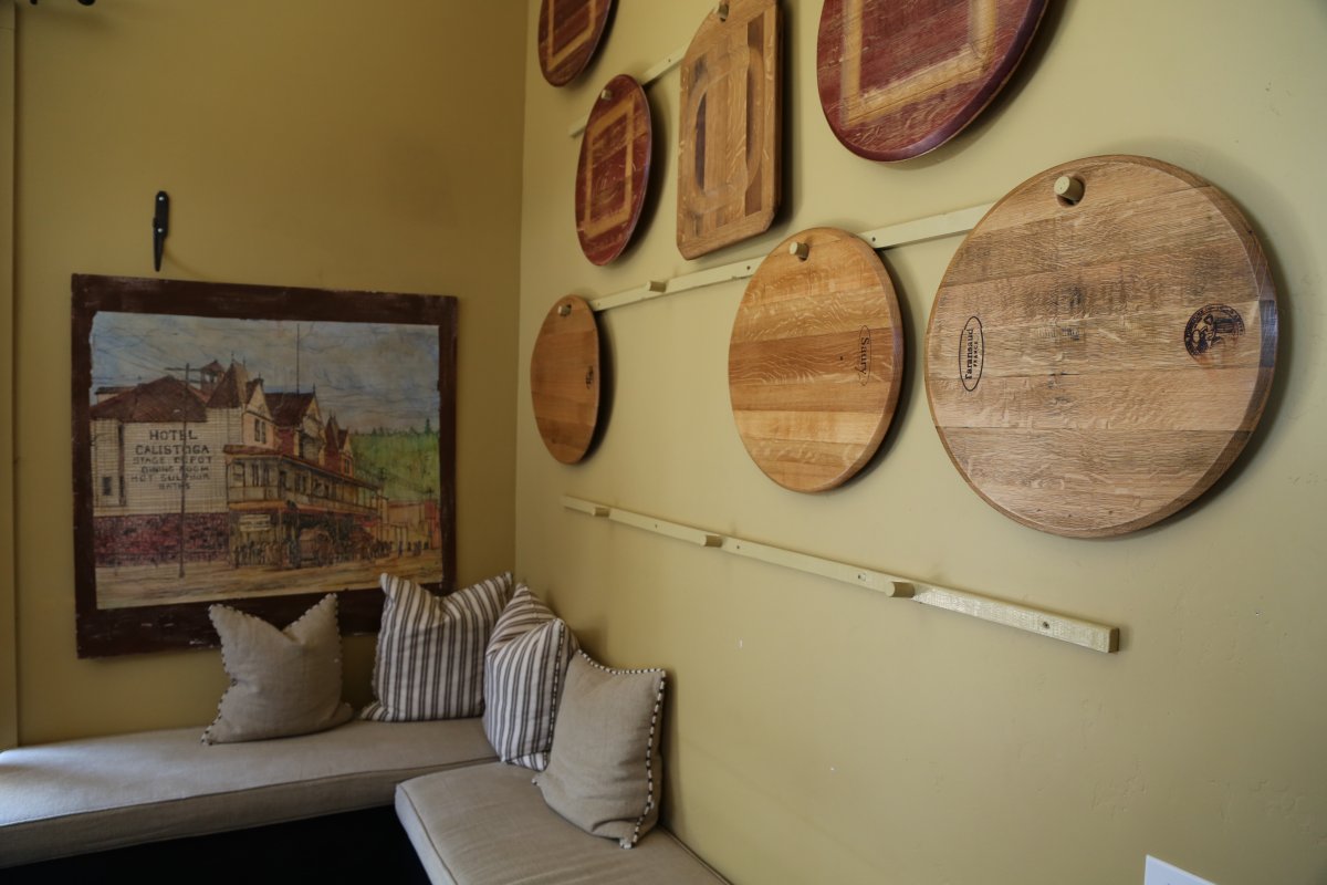 Their well appointed tasting room is located in a small metal building which was in the past was used by Calistoga Roastery, a local coffee company with a store in downtown Calistoga. Drive around the two story red building in the front to either of the two parking lots. This red building houses their office and also serves for some wine storage in it’s basement.