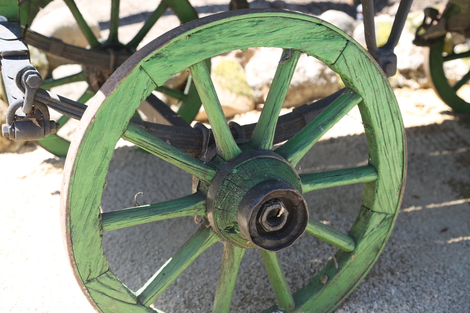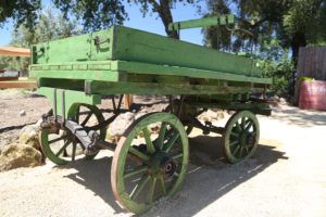 Note the old green wagon that sits next to the parking lot. This was an original piece of equipment used in the nearby Oat Hill Mine (the mine was built in 1876 and ran off and on until the mine finally closed in the 1980’s). This was a mine of cinnabar (mercury). Today the Oat Hill Mine Trailhead is about a five minute walk from their tasting room.