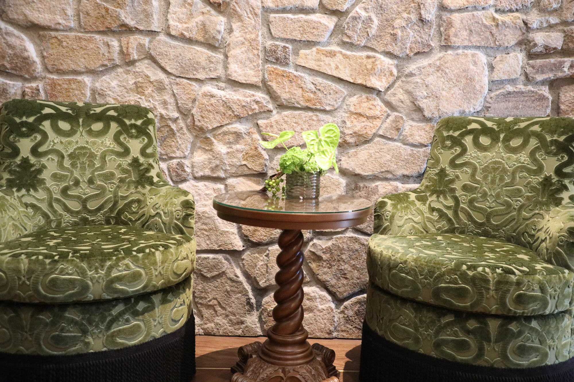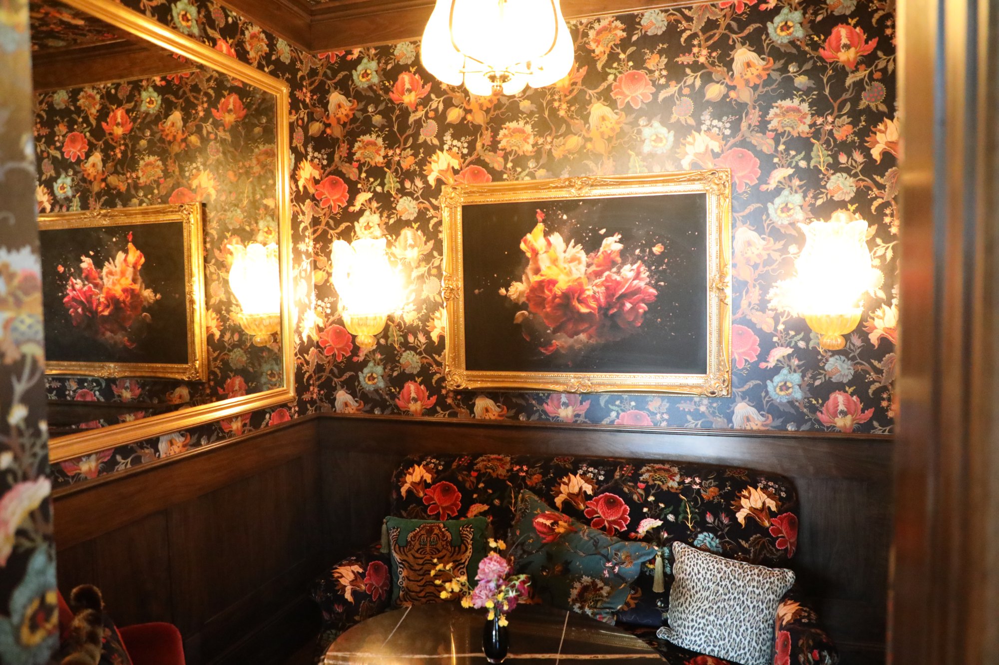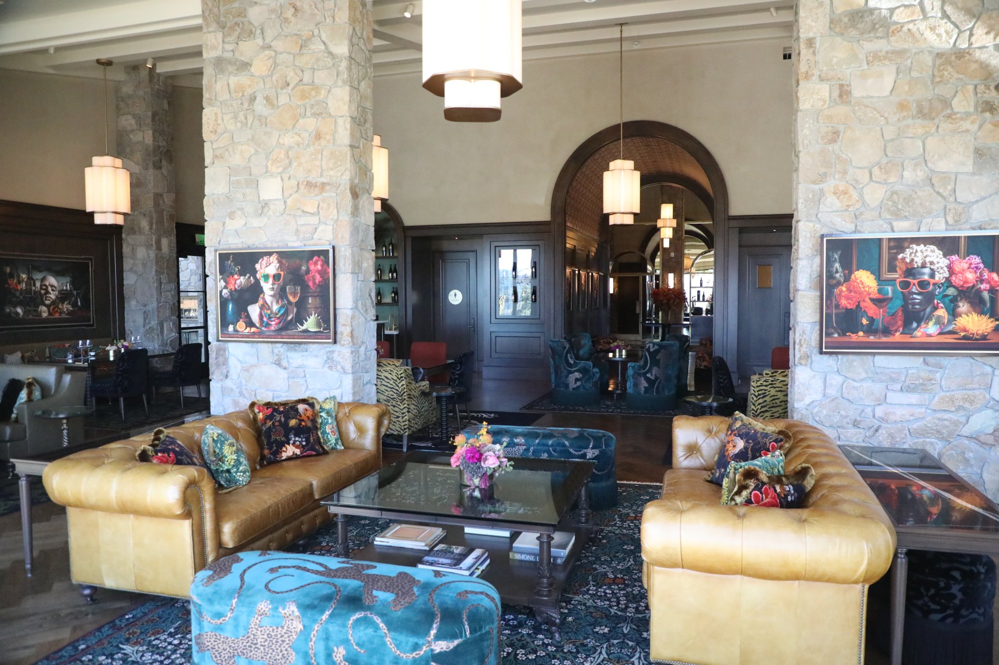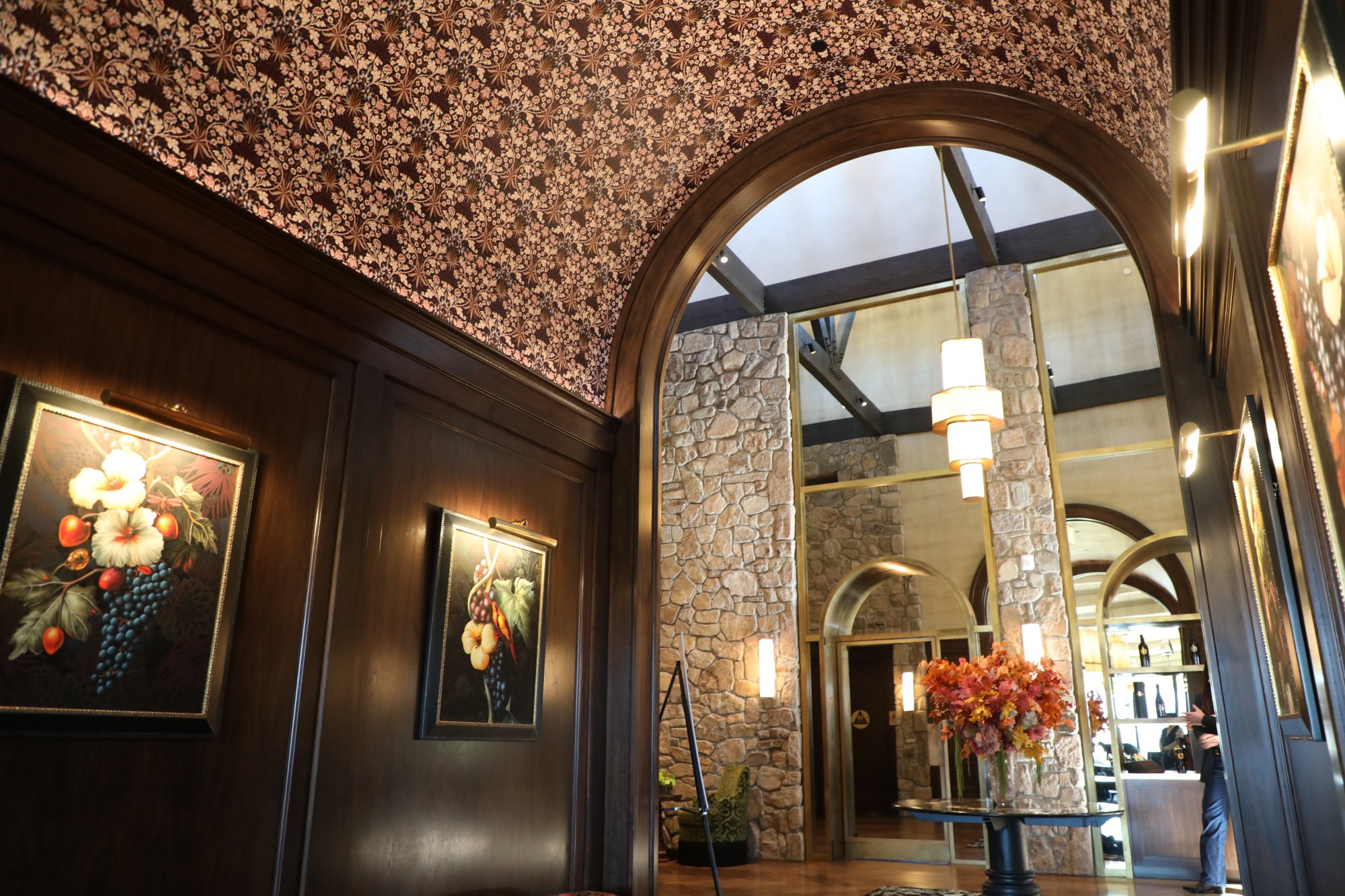 Lewis Cellars officially opened for tastings in this space on October 22, 2025 with the ribbon cutting ceremony starting at 11am on October 28th. Renovations were extensive, both in terms of its exterior and interior; the interior decor was overseen by Lynda Resnick. During her talk at the ribbon cutting, she referred to the inner vibe as being, “unapologetically indulgent”. The hospitality space features offers a sensory complement to their wines, featuring the wine influenced works of central California Coast based mixed-media artist Zachary Scott. The interior is elegant, with an old-world European feel and almost whimsical at times. And the eclectic playlist matches the vibe of the interior. In addition to the primary hospitality space, additional spaces include an indoor and outdoor salon privé. Guests are encouraged to have reservations but walk-ins are also welcome, space permitting.