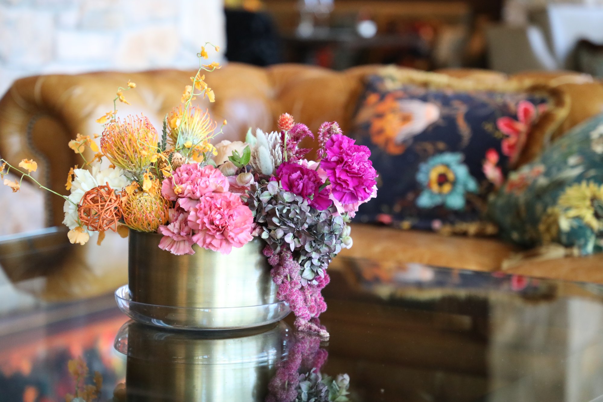 The restaurant is located in the same space as the hospitality center with a feel that is both simultaneously farmhouse married with modern elegance. The indoor dining space is intimate and seats only a handful of tables. An adjoining outdoor space is also available with heat lamps as needed. The focus is on small but very rich plates featuring both local ingredients from local suppliers (including from the 26-acre JUSTIN Farmstead with orchards, vegetable gardens and edible flower fields) as well as ingredients sourced from further afield. The menu is highly seasonal.