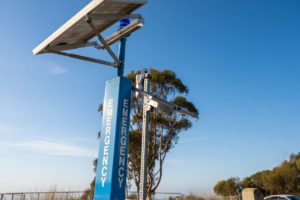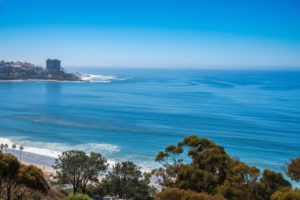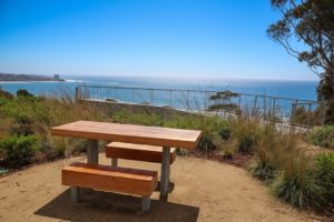 A short path winds through the overlook and features an informative sign providing information about the Kumeyaay Nation, the native American’s who lived in the region. And An emergency call station is prominently displayed in the center of the space. A recycle and trash bin are also located here. Best visited just before sunset.