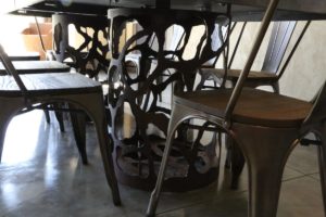 Much of the furniture and accessories inside the tasting room are made from recycled materials – some of the wood was taken from old wine barrels and refurbished into tables and chairs. Even old metal propane canisters can be found in the tasting room – one as a support for one of their tables.
