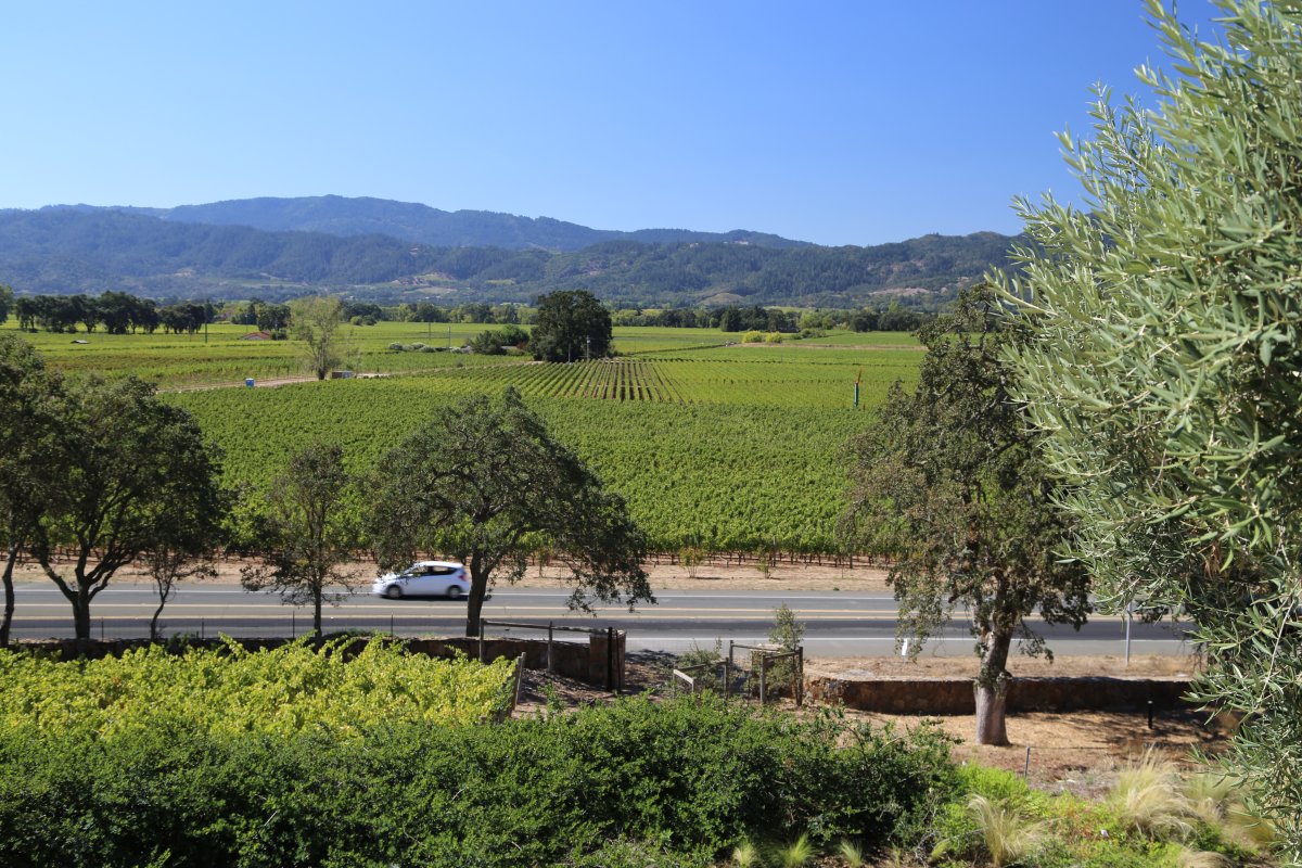 The winery is located just above the valley floor – high enough in elevation that one has panoramic views looking over the vines to the west and the Mayacamas mountain range. Once you park, walk up either one of two stairways to the tasting room or use the elevator. Walk-ins are welcome which are becoming more and more of a rarity these days in Napa Valley. A tasting usually includes samples of 4-5 current release wines and weather permitting are primarily seated, outside on the veranda. If the tasting room becomes busy, they have a second tasting counter they can open.