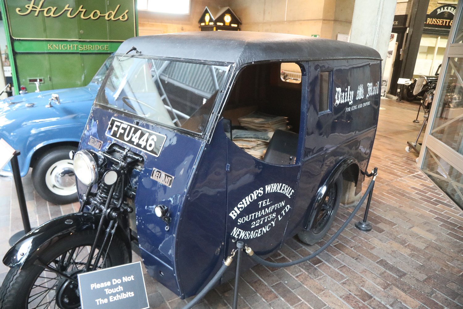 After a few years the collection outgrew the space, and he moved the cars into other spaces at Beaulieu. The current building housing the National Motor Museum first opened on July 4, 1972. We visited for their 50th anniversary in 2022. The first car in the collection was a De Dio Bouton 6hp, built in France in 1903 with license plate, AA20. It was used on the estate from 1913 through the 1930s and was displayed in the palace entrance hall when Montagu first opened the manor to the public. Remarkably this car is still part of their collection and is on display near the entrance to the National Motor Museum. Its top speed is 30mph.