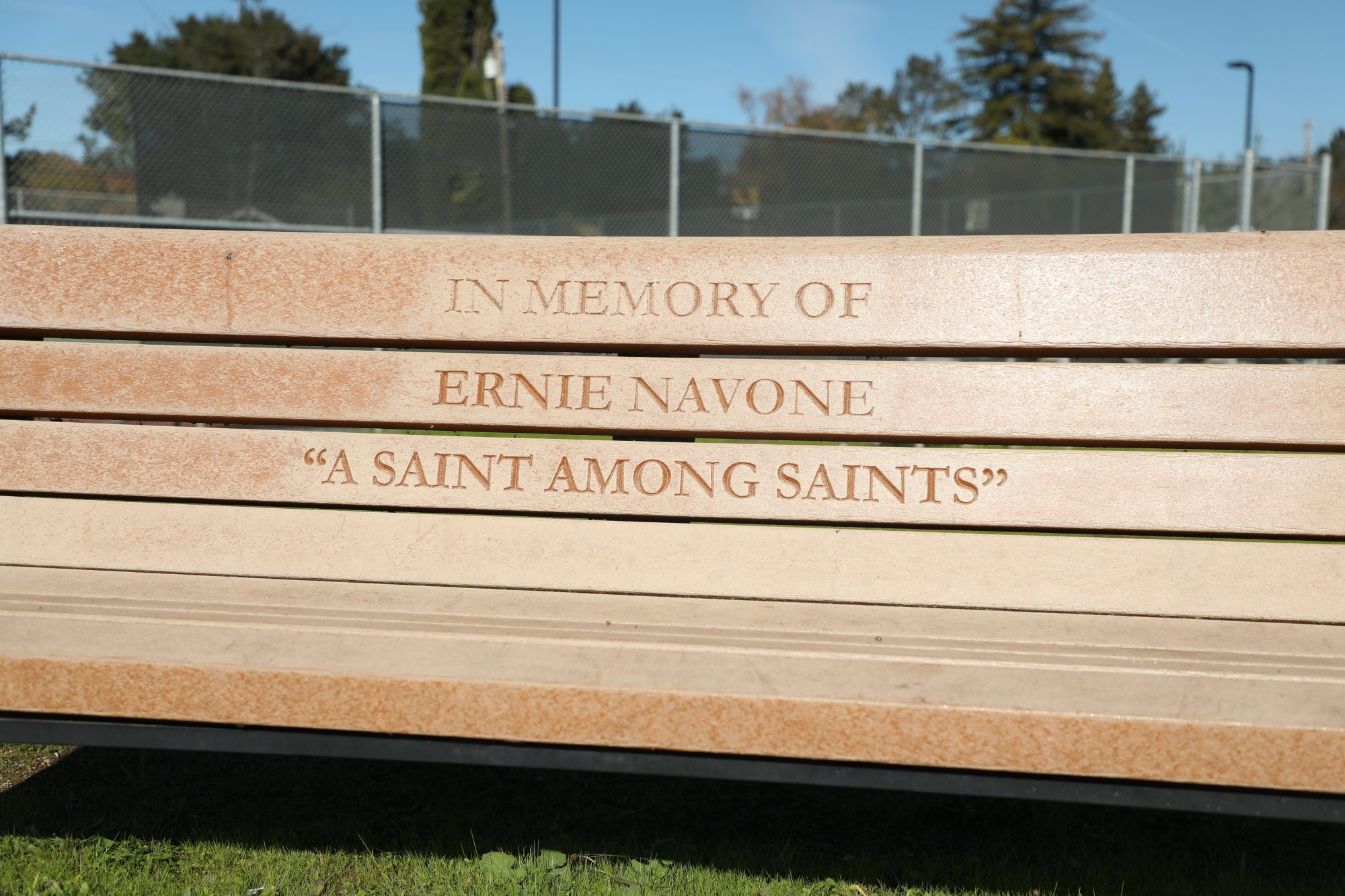 In 2010 a bench honoring Ernie Navone was unveiled at St. Helena High School, located on the northeast corner of the high school track. Navone was a St. Helena alumni, having graduated in 1941.