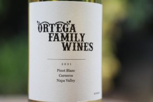 The 2021 Ortega Family Wines Carneros Pinot Blanc is medium to deep gold in color; the bouquet is immediatley tangy and brightly lit with higher toned ripe fruit and floral aromatics. Its scents are a union of canned pineapple slices (an aroma that reminds us of our favorite dessert, pineapple upside down cake), citrus blossom, honeysuckle, lemon oil, apricot, bruised golden apples, sea shells, dried nectarines, lemon juice, beeswax and golden plums. And as the wine opens, there is an underlying note of vanilla and caramel. And like on the bouquet, the palate is also tangy. The first flavor we noted is of pineapple, along with golden delicious apple slices which have been sitting out for several hours, Meyer lemon, a honeyed character (but not sweet), loquat, kumquat and a subtle bitterness, tarragon and vanilla on the finish. Its texture is silky and supple, lifted nicely by its balanced acidity. This wine is showing some bottle maturation at this age, four years post vintage, both on the bouquet and palate but is still very much fresh and vibrant. Its listed ABV is a refreshing 13.2%.
