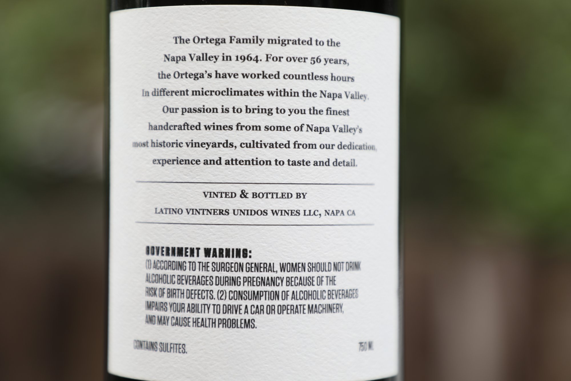 Ortega Family Wines was founded by Jesus Ortega in 2018 (first vintage). Jesus was born in and raised in Napa Valley; his father Jesus Sr., migrated to the U.S. with his two brothers from Michoacán, Mexico for the first time in 1947 as part of the United States Bracero Program. This program was established in 1942 by the Mexican Farm Labor Program to primarily address an agricultural worker shortage during World II by providing Mexican men short term labor contracts. The Bracero Program ended in 1964. Ultimately because of this program, numerous families eventually settled in Napa Valley, and over the years we have met many of their heirs who work in the valley’s wine industry.