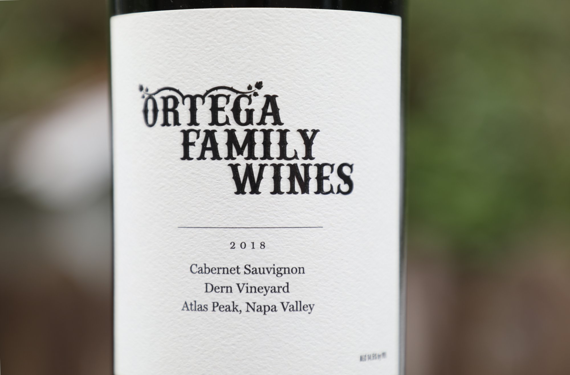The 2018 Ortega Family Wines Cabernet Sauvignon, Dern Vineyard Atlas Peak is deep ruby with some brickish colors showing and completely opaque; for reference, we needled and nosed this 7 years post vintage. It shows an advanced maturity on both the bouquet and palate, beyond what one would guess from its age in the bottle. The bouquet offers scents of dried, stewed, stale and very ripe fruits including plums and blackberries, baked cherries, sweet pipe tobacco, milk chocolate, Graham cracker, toasted walnuts and caramel. The palate offers muted, dried and stewed fruit flavors including of blackberry, dark plum, cherry, and dark mulberry along with dark chocolate and caramelized nuts (but no accompanying sweetness). The tannins feel grainy and gritty, persisting beyond the fruit with a dusty feel, broadly and densely covering the entire palate with a moderate to firm extended grip. Features a simultaneously bright but simultaneously perceived softened acidity.