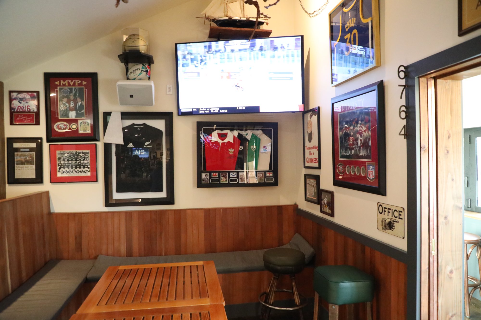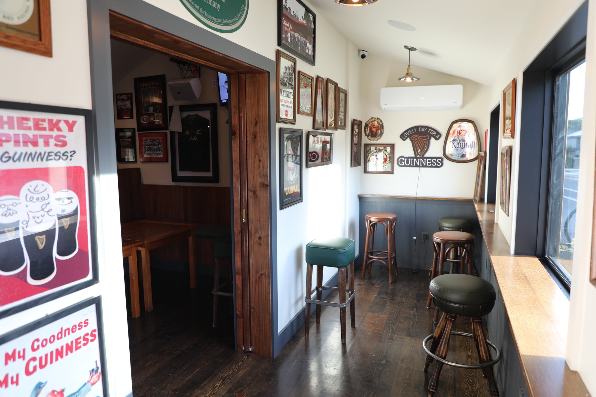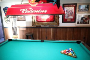 Three main rooms are housed inside, the primary bar seating, an adjoining room with a pool table and a cozy room with a window overlooking Washington Street. First time visitors should take some time to walk around the small space looking at the photographs and other items displayed on the walls.