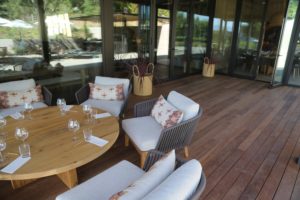 Those who opt for the Quintessential Quintessa experience will taste in one of the glass pavilions (designed by Maca of Maca Huneeus Design, Agustin Huneeus Jr’s wife) which overlook this part of their property. From here one can walk into the edge of one of the vineyards. One of these glass pavilions was featured in a scene from the movie, Wine Country.
