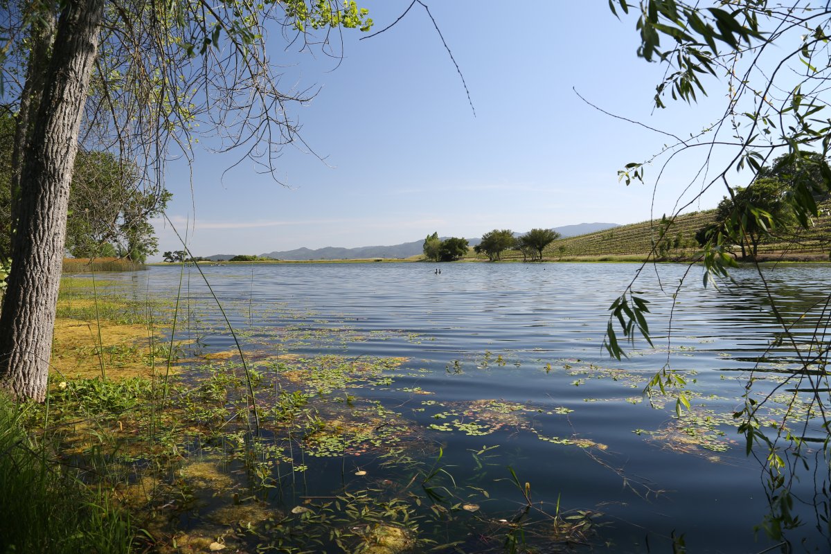 A visit from the top of Dragon’s Hill behind the winery is a window into a part of Napa that few see despite all the daily traffic on the Silverado Trail that passes by their driveway. It is truly a peaceful scene – a rare view of a bucolic part of the valley with perfectly groomed vineyards lining the rolling hills and the quieting influence of the picturesque lake below.