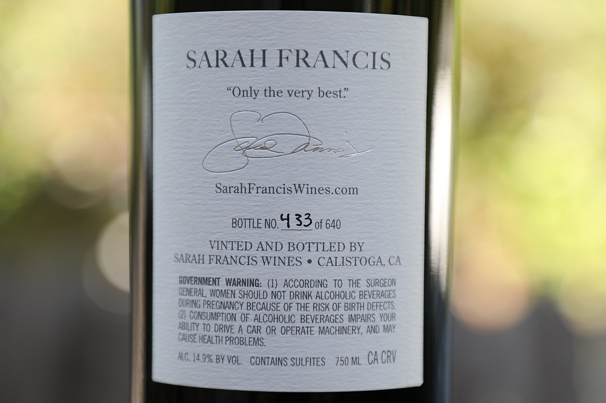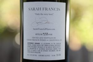 Sarah Francis is almost entirely sold via an allocation list. The wines have some very limited restaurant distribution locally including at Cole’s Chop House in Napa and Evangeline in Calistoga. For more information, to sign up for the mailing list, to join the allocation list or to schedule a tasting, visit: www.sarahfranciswines.com